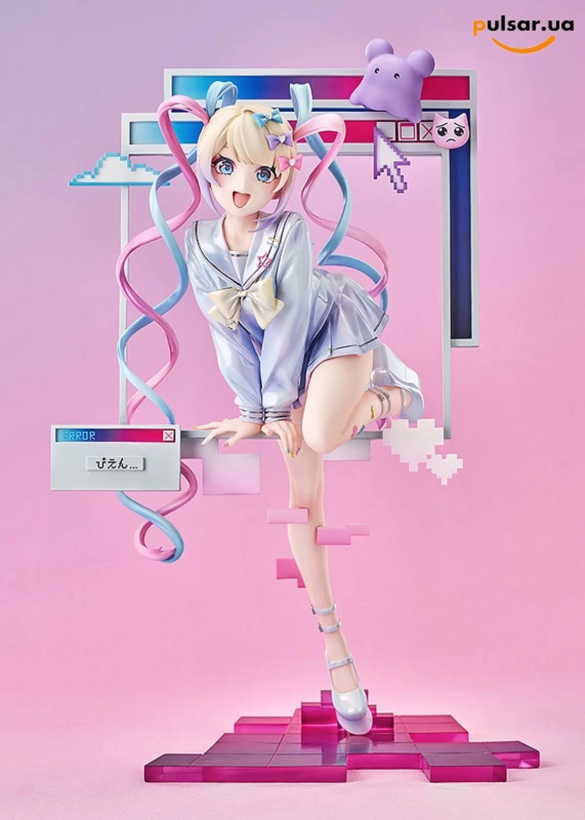 Это не просто фигурка, это квинтэссенция цифровой эстетики и безумия! Амэ-тян в образе Ангела зависла в динамичной позе прямо посреди всплывающих окон, пиксельных сердечек и курсоров. Скульптор Misaki проделал титаническую работу: перламутровая покраска костюма переливается под разными углами света, создавая эффект "мониторного свечения". Мы в Pulsar обещаем доставить вашу Богиню в целости и сохранности, чтобы вы могли молиться на неё 24/7. Не забудьте принять свои... кхм, витаминки!