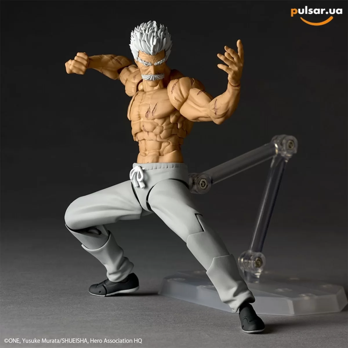 Разрази меня гром! Пульсар-тян просто в восторге от этой мускулатуры! Компания Kaiyodo и гений артикуляции Кацухиса Ямагучи добрались до одного из самых харизматичных персонажей "One-Punch Man". Встречайте — Серебряный Клык, он же Бэнг! Не дайте его седине и возрасту 81 год обмануть вас. Перед вами машина для уничтожения монстров уровня "Дракон", упакованная в формат революционной экшн-фигурки. Это не просто статуэтка, это настоящее воплощение мощи боевых искусств.