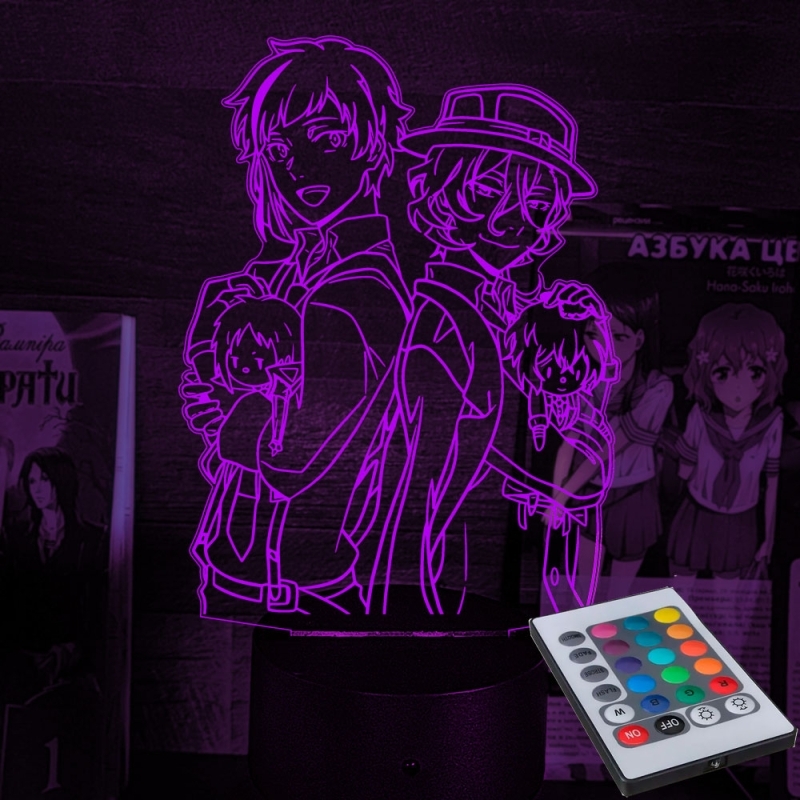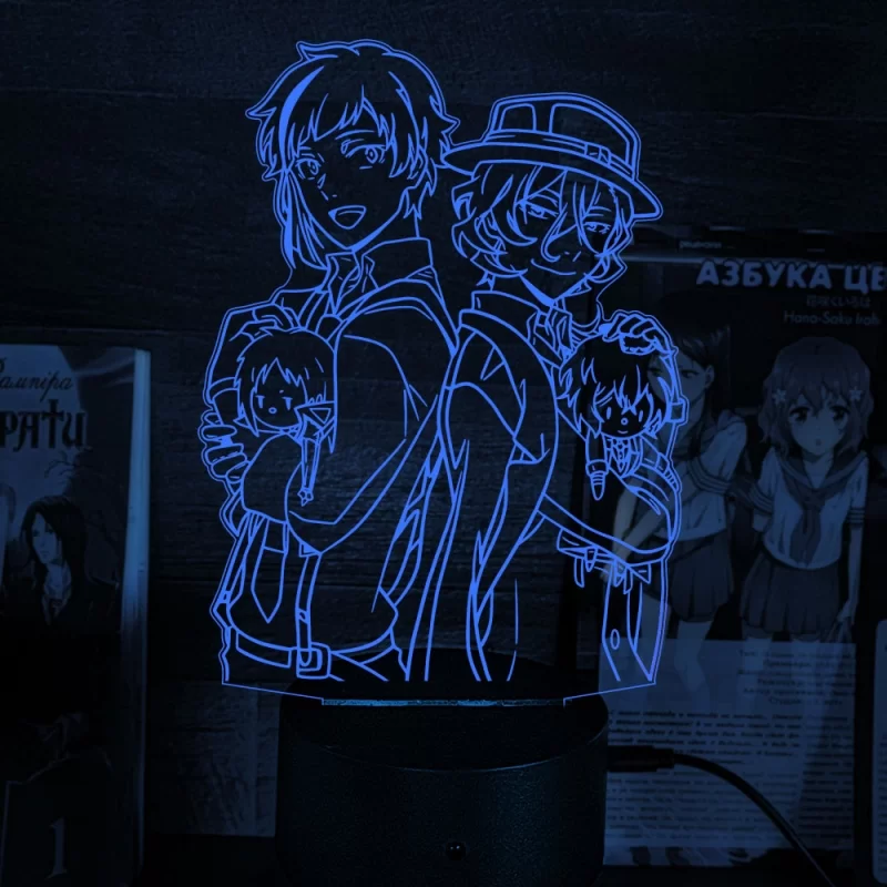 Акриловый 3D светильник-ночник «Дазай и Чуя "Великий из Бродячих Псов"» tape 1