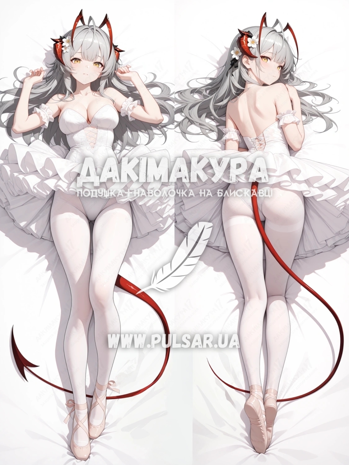 Эта дакимакура дарит нам уникальный шанс увидеть W без привычной брони и оружия. Белоснежное платье балерины подчеркивает ее скрытую хрупкость, а рожки и острый хвостик напоминают о ее дьявольской сущности. Засыпать в обнимку с такой оперативницей это настоящий адреналин, смешанный с абсолютной нежностью!