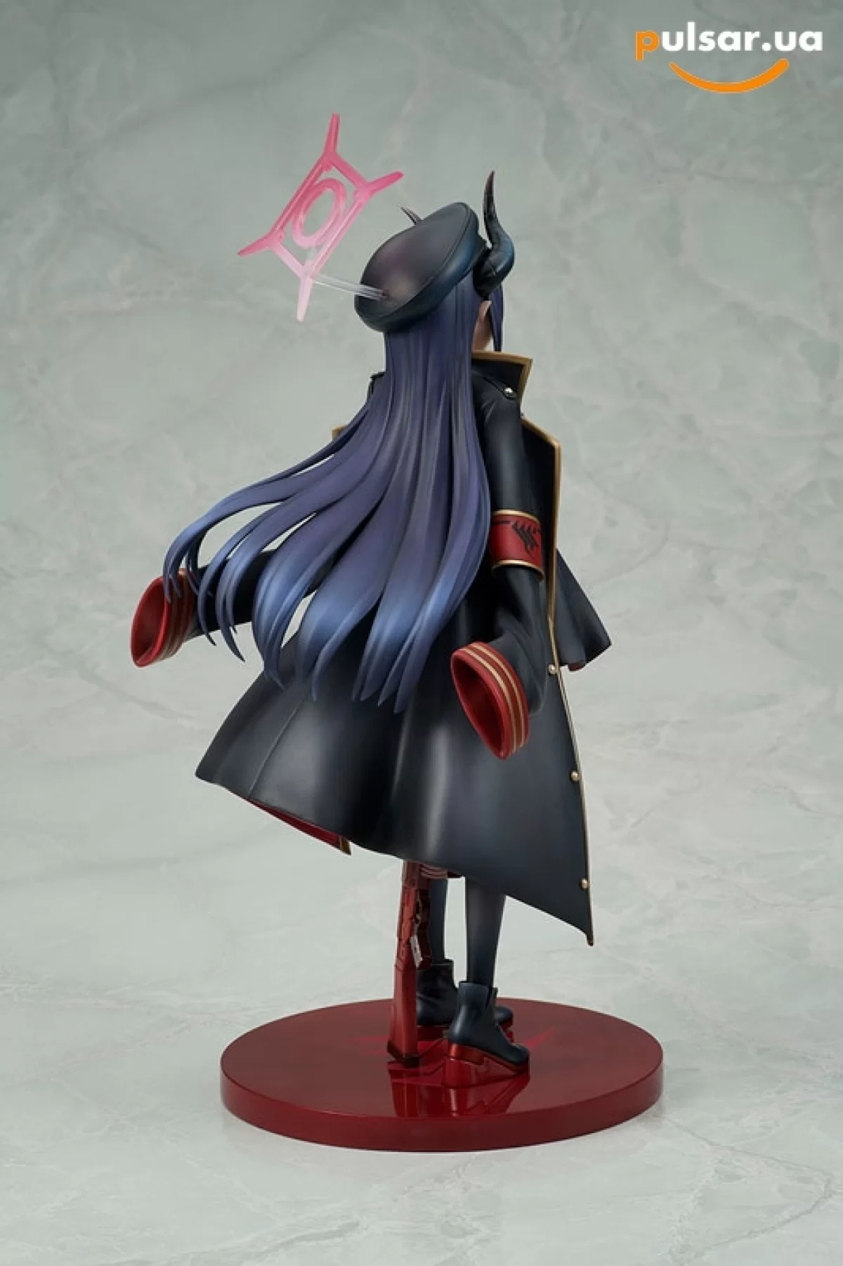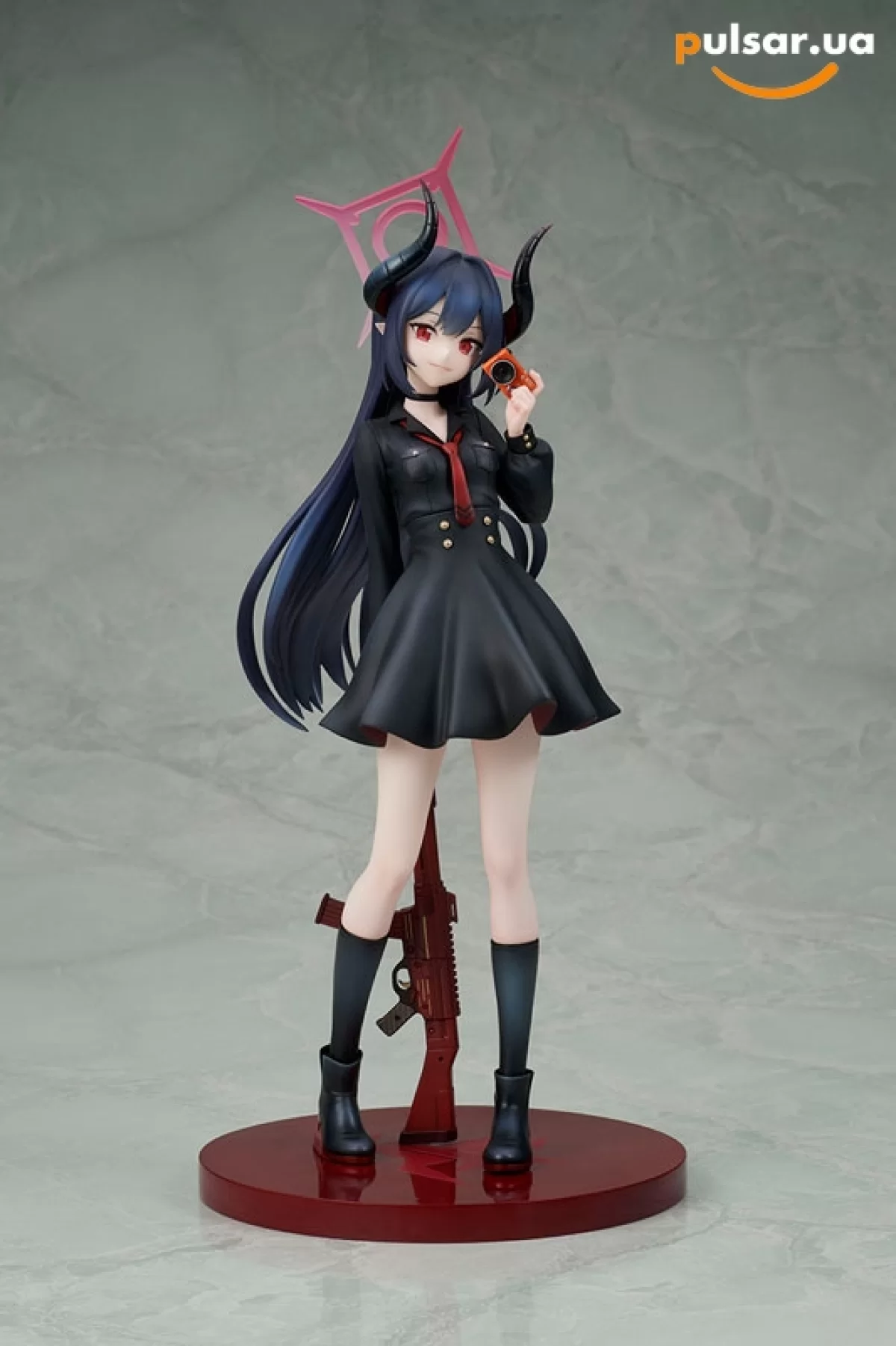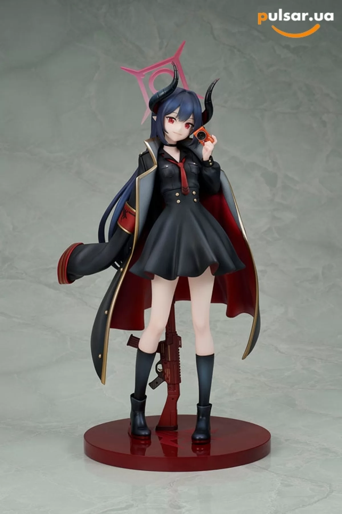 Відповідь: Привітики! Вся справа в німбі та композиції. Довгі роги, високі підбори і геометричний німб (Halo), що ширяє над головою, додають фігурці сантиметрів. Це робить її однією з найвищих у серії 1/7, так що готуйте високу полицю!