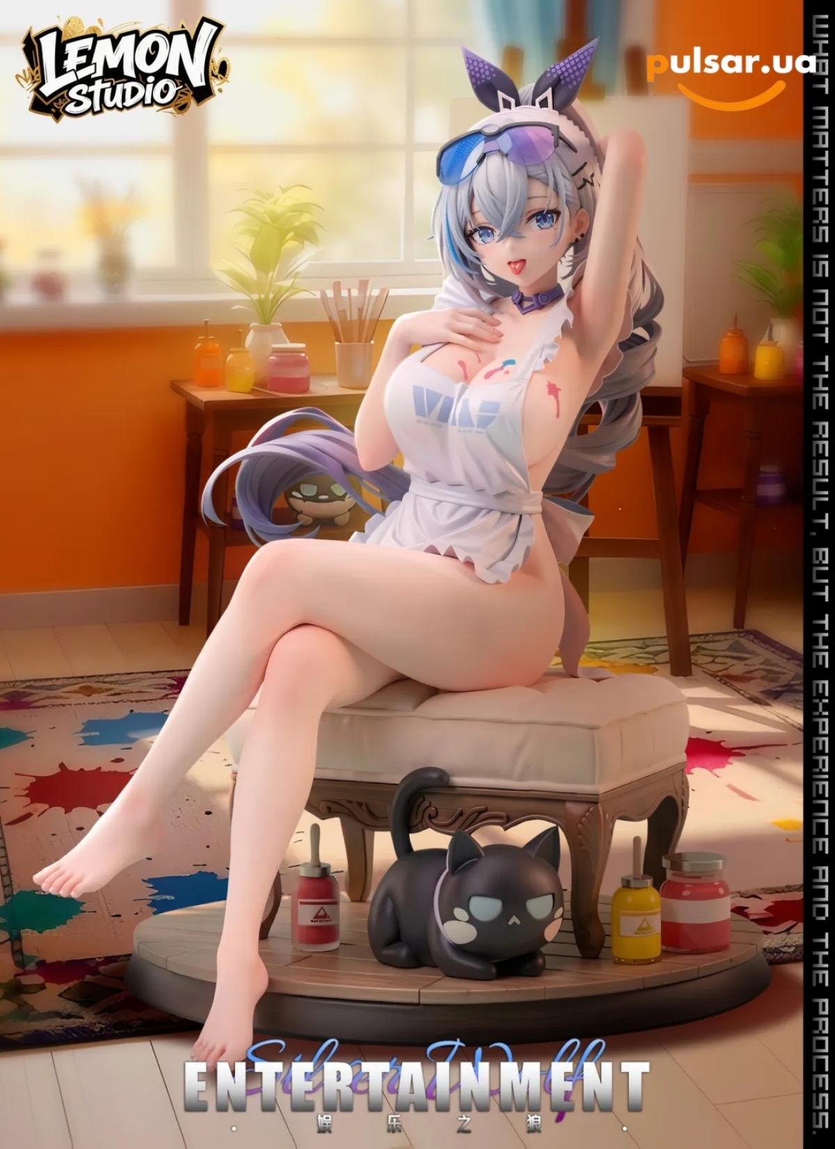 Ця унікальна фігурка грайливо переосмислює геніальну геймерку Срібного Вовка з чарівними котячими рисами. Очікуйте чудові котячі вушка та інші "котячі" деталі, гармонійно вплетені в її культове технологічне вбрання, передаючи її крутий норов з непереборним чібі-шармом.