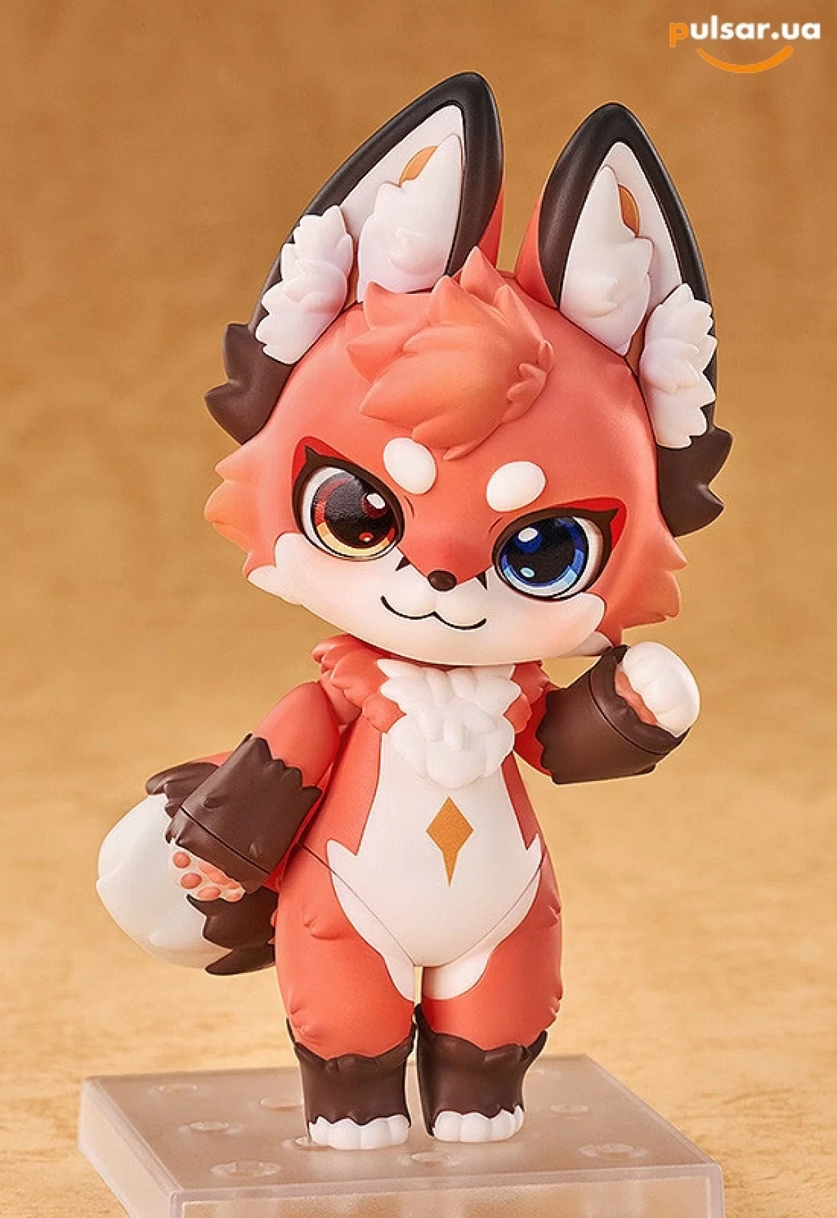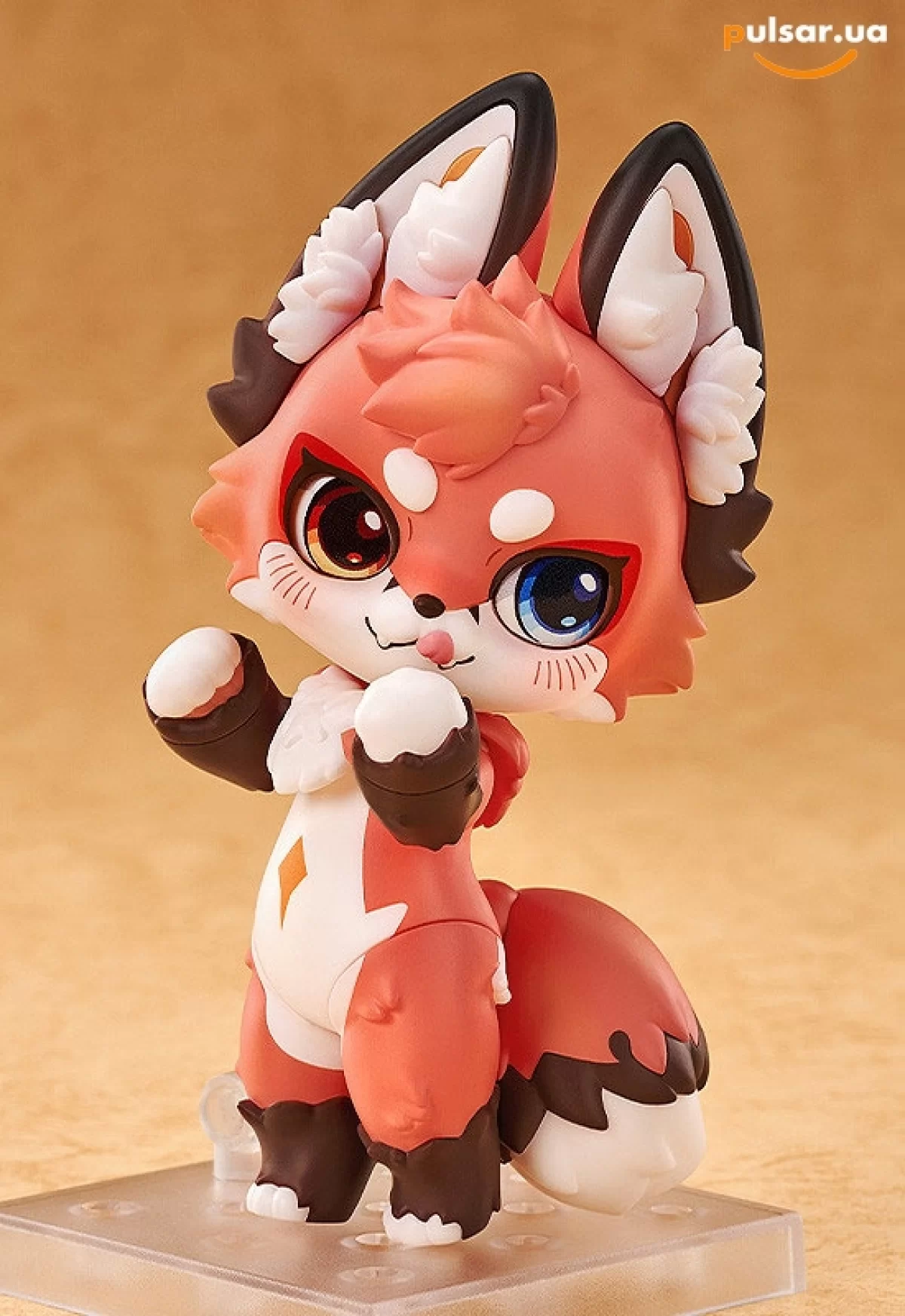 - Приголомшлива робота з кольором і деталями: Скульптор під псевдонімом ichinouri створив справжнє диво, перенісши пухнастий 2D-арт в об'ємний формат. Шерстка Рівера пофарбована в неймовірно теплий, насичений осінній персиковий відтінок, який контрастує з білосніжними щічками і грудкою. Особливого шарму фігурці надає гетерохромія його величезних, виразних очей: одне око сяє золотим бурштином, а друге переливається глибоким сапфіровим синім.