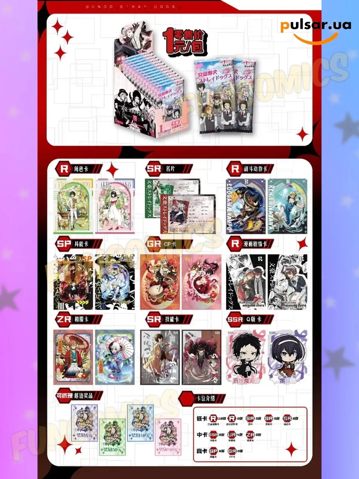 Ваші улюблені еспери тепер на полі бою! Оригінальні бустери «Weiss Schwarz Blau: Bungo Stray Dogs» вже доступні до замовлення. Зберіть свою команду мрії разом із Pulsar. Доставка по всій Україні.