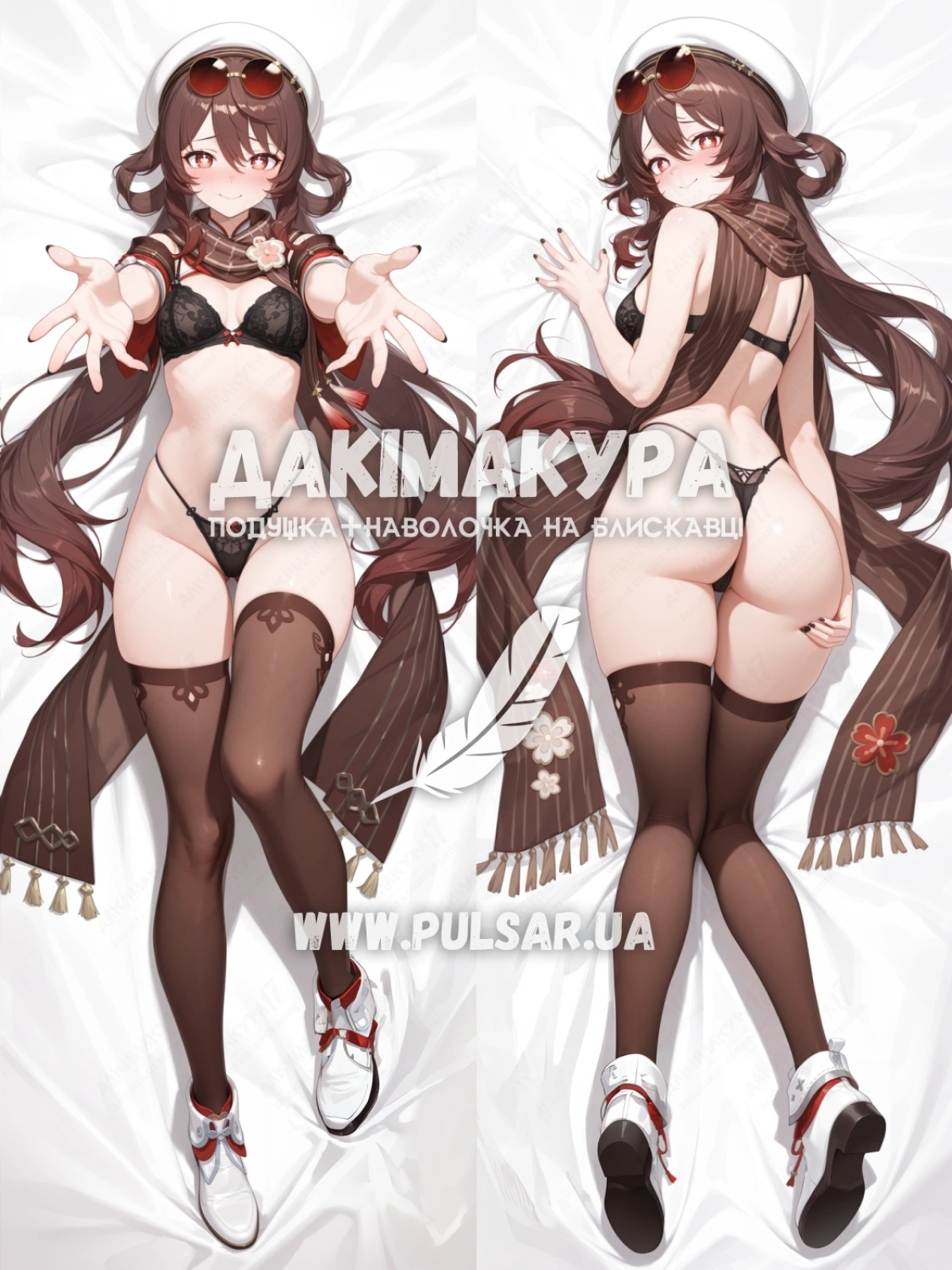 Купити відверту дакімакуру Ху Тао 18+ з Genshin Impact у магазині Pulsar! 77-й директор бюро Ваншен чекає тебе для найспекотніших нічних ритуалів.