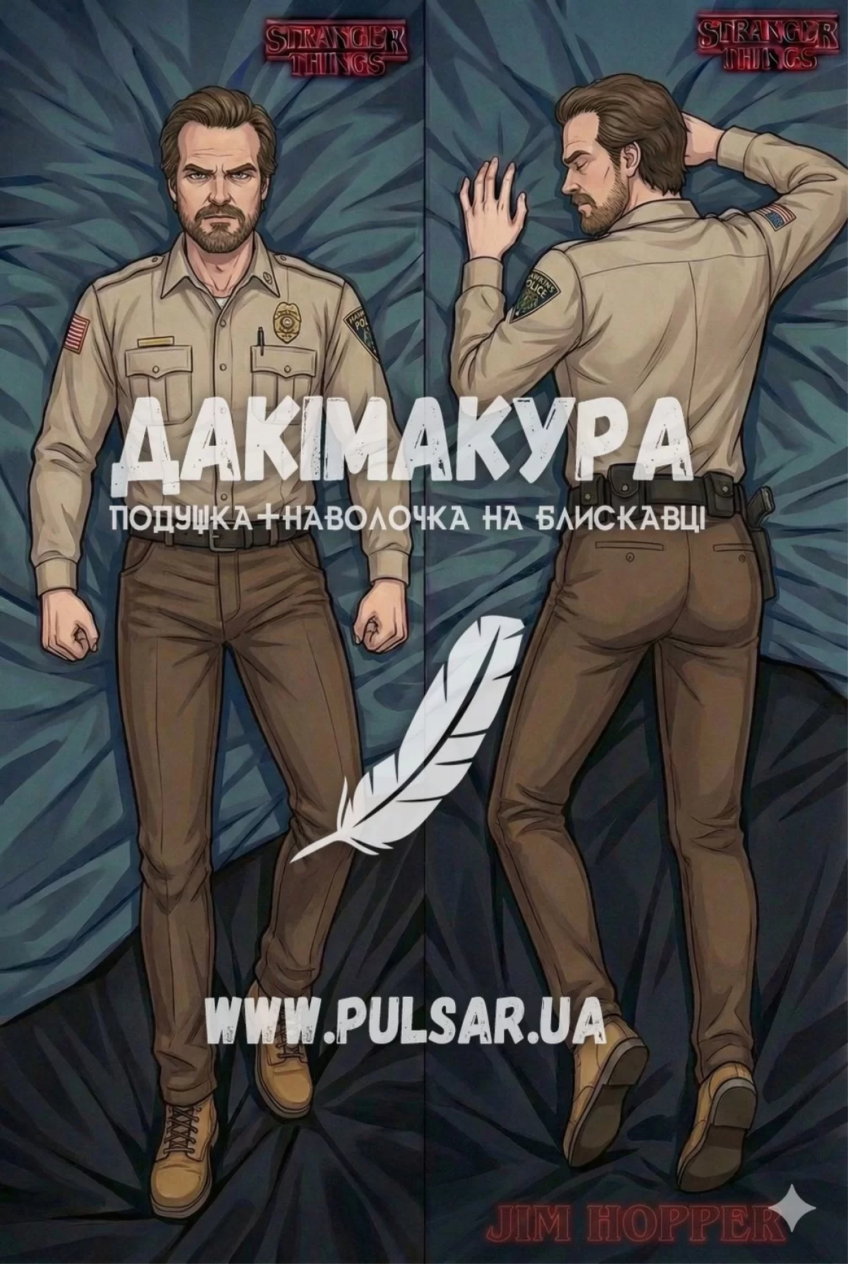 Дакімакура (подушка для обіймів) 150 см «Stranger Things | Дуже дивні справи | Jim Hopper» модель 1